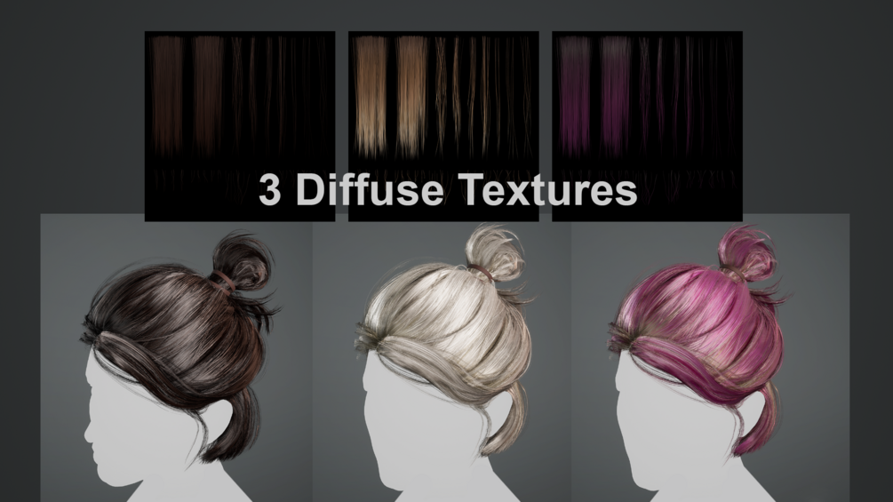 - 3 Diffuse Textures: Brown, Blond, Purple