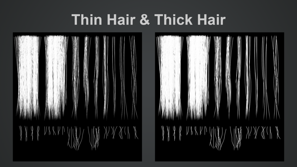 You will find two variants of Hair Texture: thin and thick - so you can experiment with your shader and see what works best.
